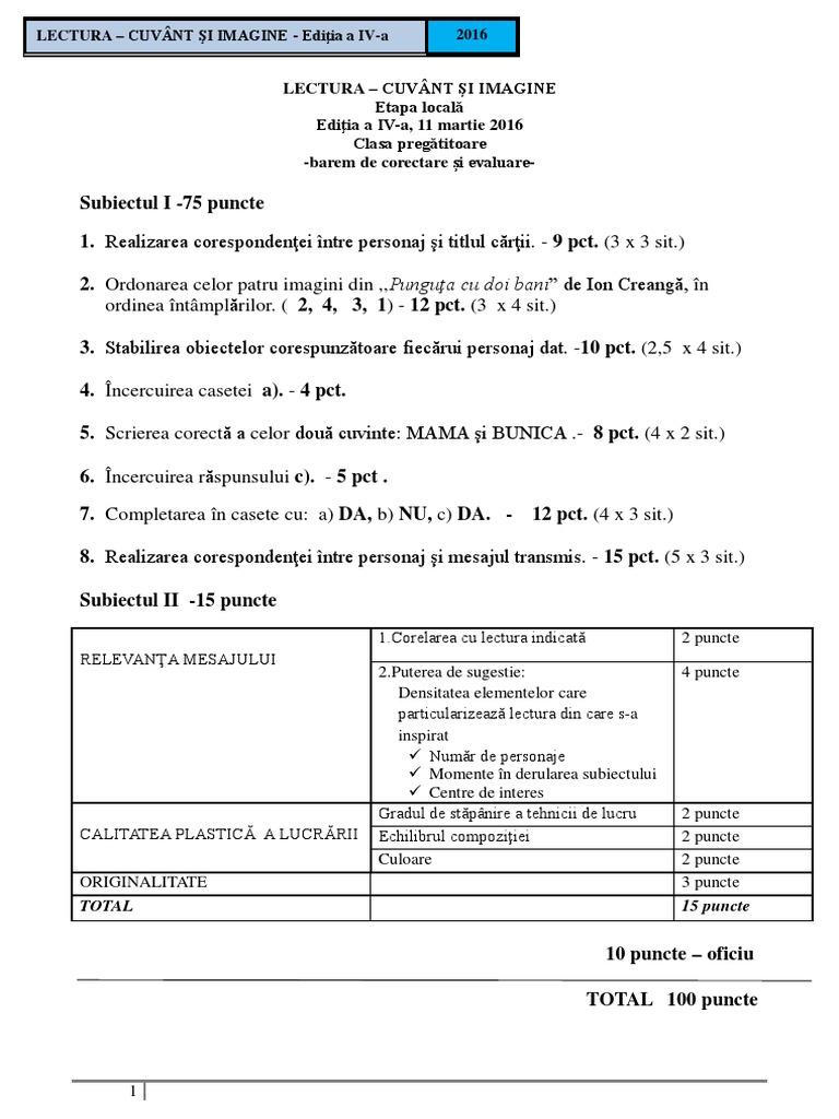 Concurs Lectura Cuvant Si Imagine 2016 Subiecte