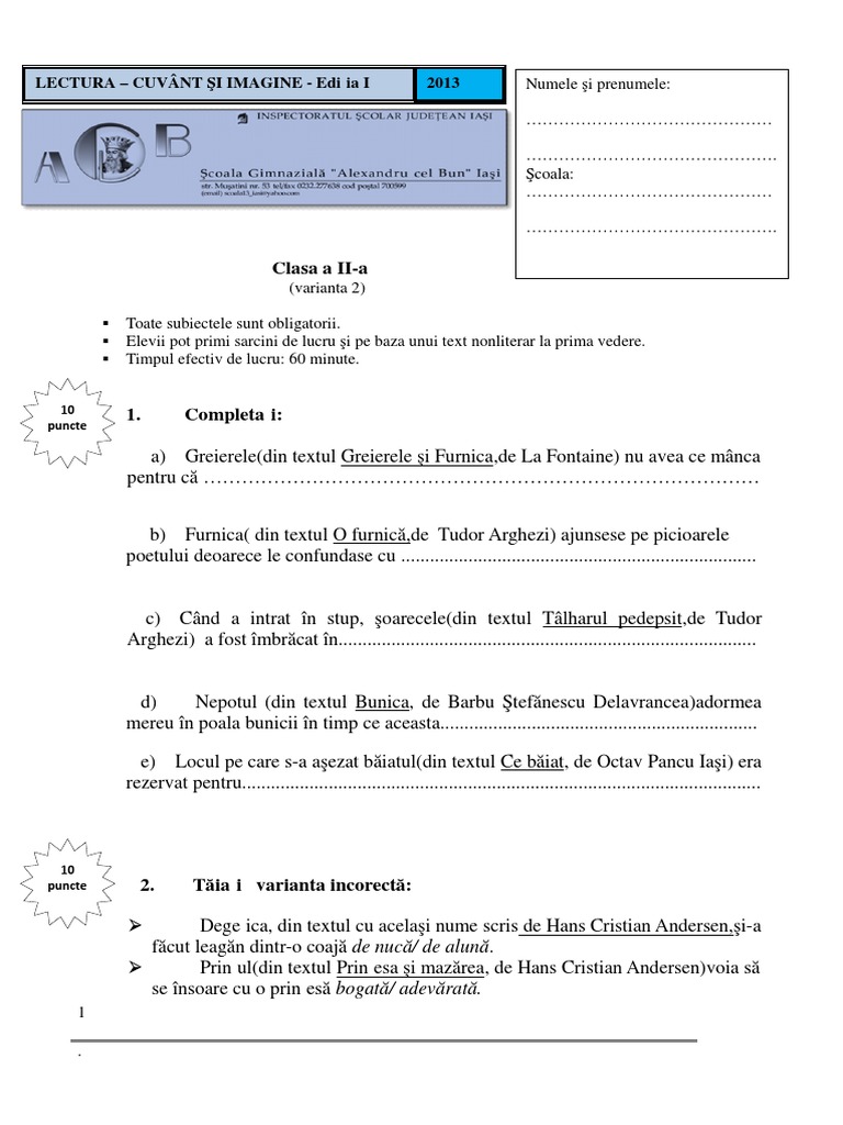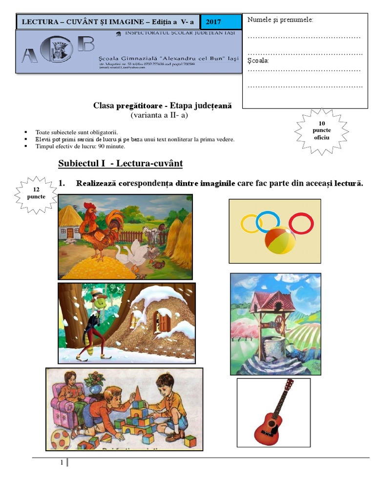 2016 Lectura Subiecte Clasa Pregatitoare Varianta I Pdf