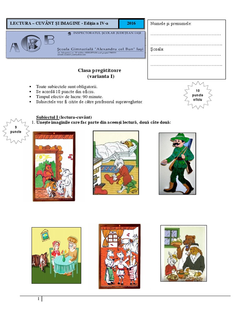 2016 Lectura Subiecte Clasa Pregatitoare Varianta I Pdf