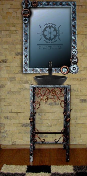Mobilier Baie Fier Forjat Stil Industrial Oglinda Si Suport